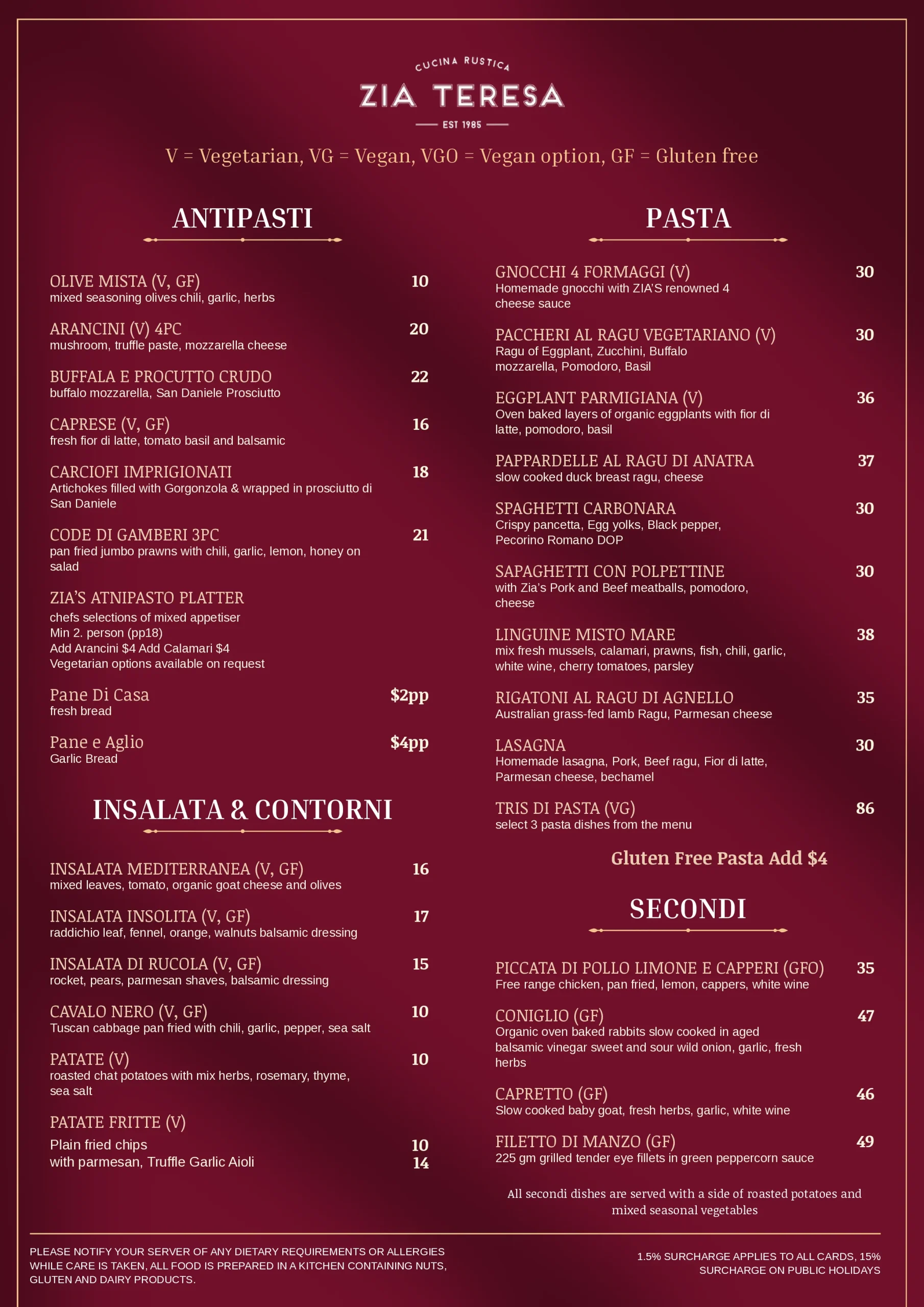 Zia Teresa is a family-run Italian restaurant on Lygon Street. Our handmade pasta, regional recipes and carefully chosen Italian wines have been bringing people together since 1985. Whether it’s a long dinner with friends or a night worth celebrating, every table here is treated like family. And, every moment here is an experience!